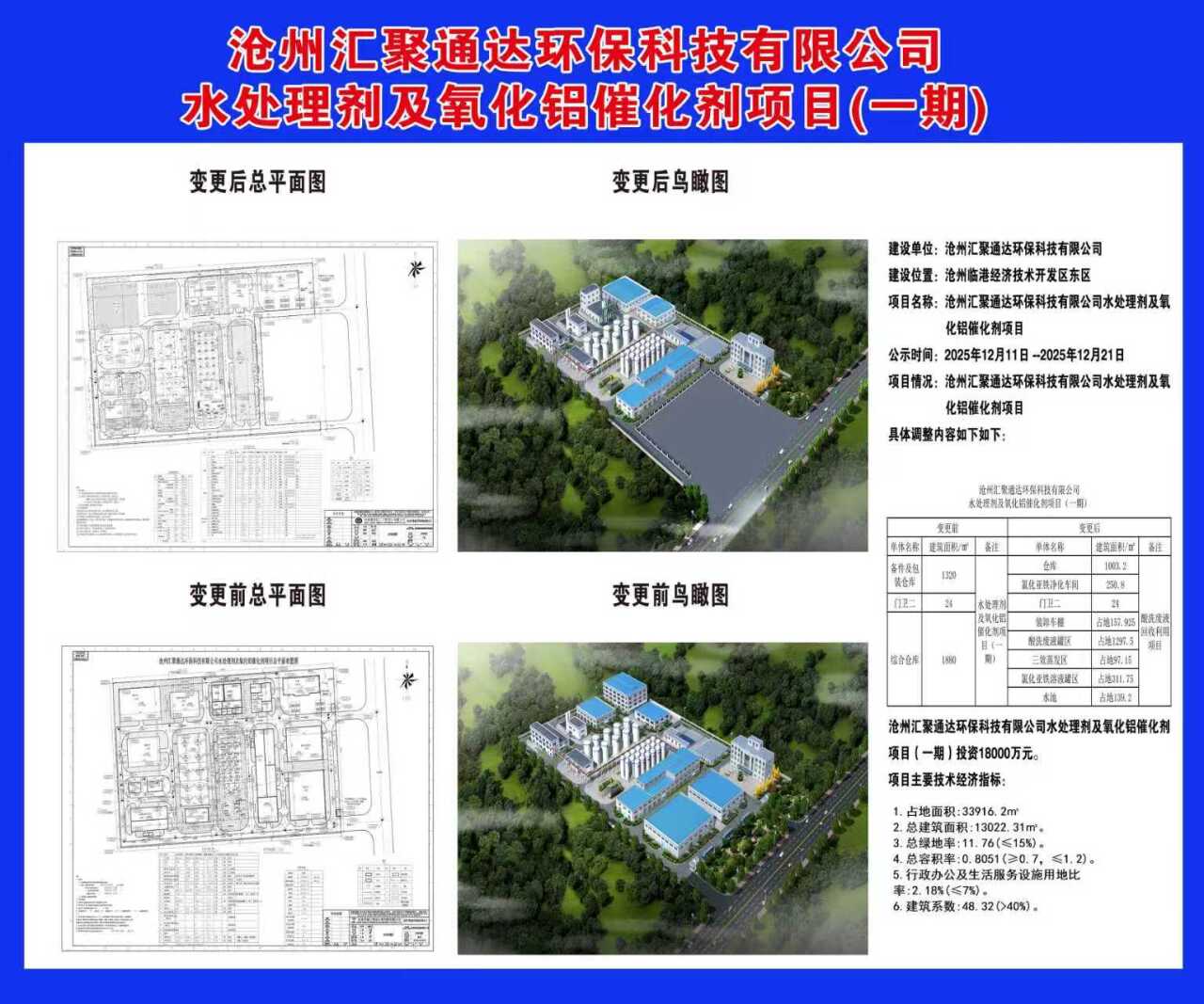 沧州汇聚通达环保科技有限公司 水处理剂及氧化铝催化剂项目(一期) |