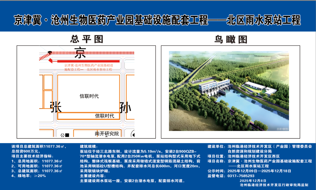 项目名称:京津冀·沧州生物医药产业园基础设施配套工程——北区雨水泵站工程