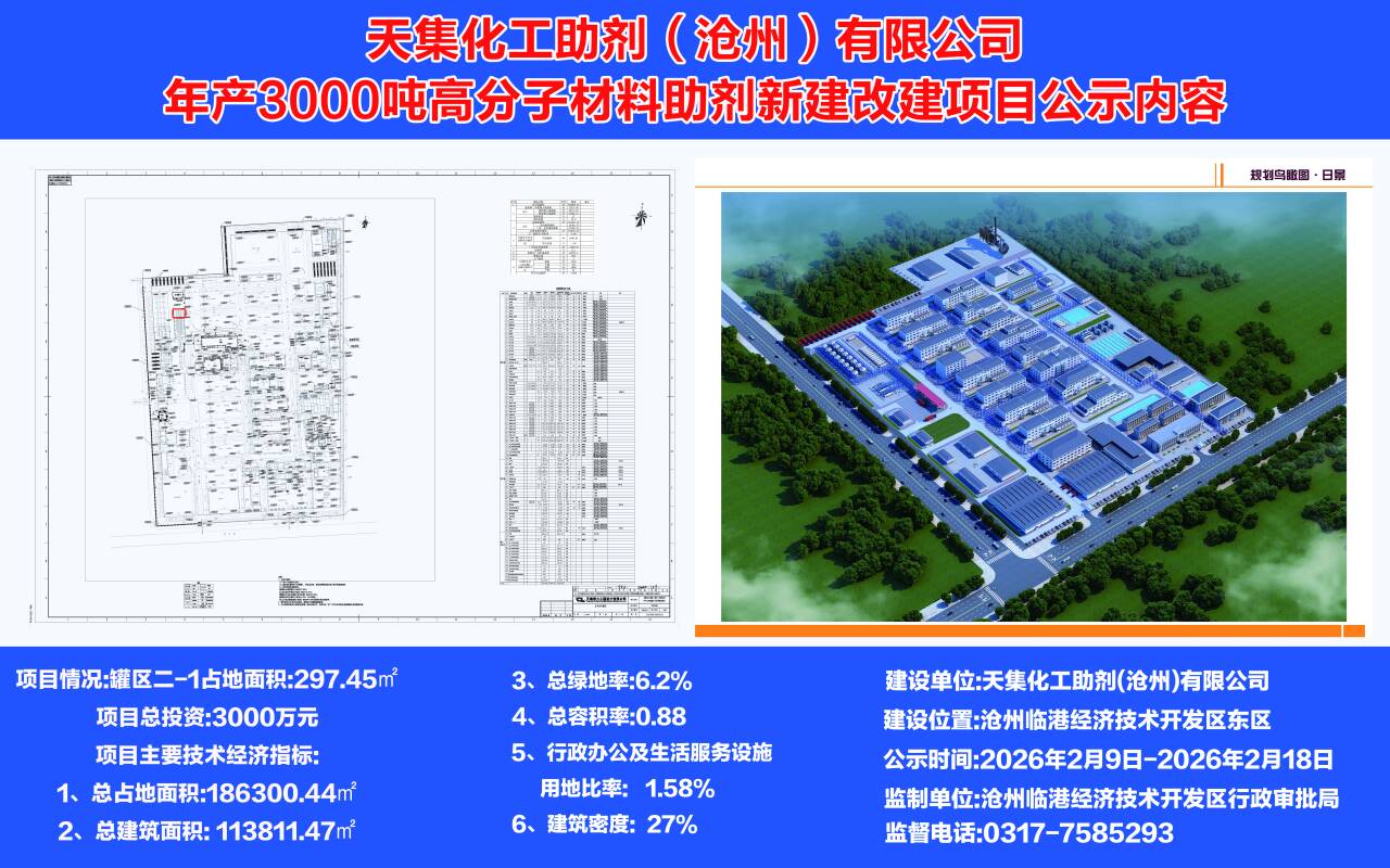 天集化工助剂(沧州)有限公司年产3000吨高分子材料助剂新建改建项目公示内容